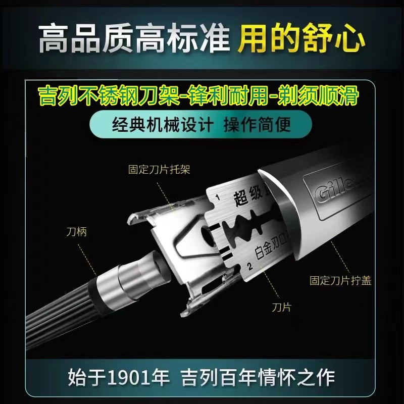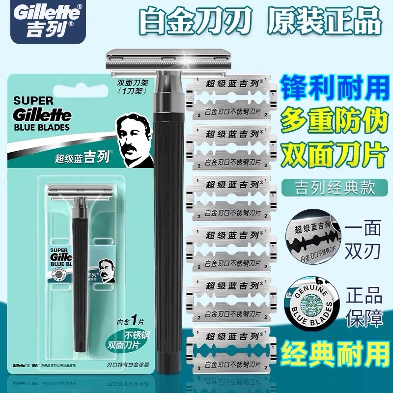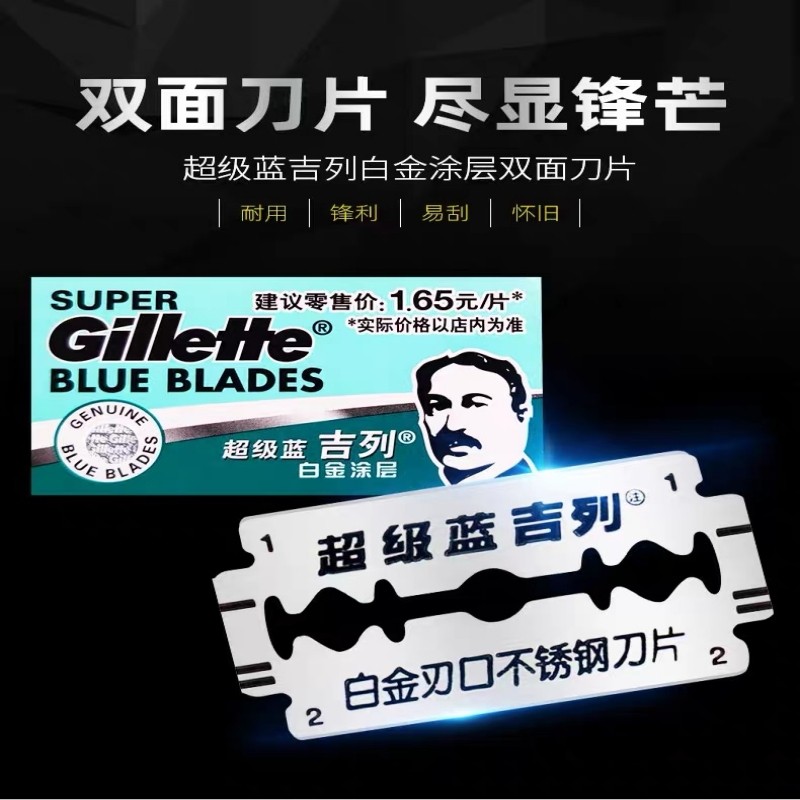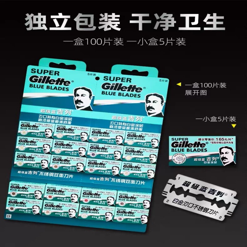 正品超级蓝吉列不锈钢双面剃须刀片老式手动刮胡刀架修眉理发刀片