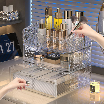 化妆品收纳盒桌面透明防尘梳妆台护肤口红化妆刷亚克力抽屉置物架