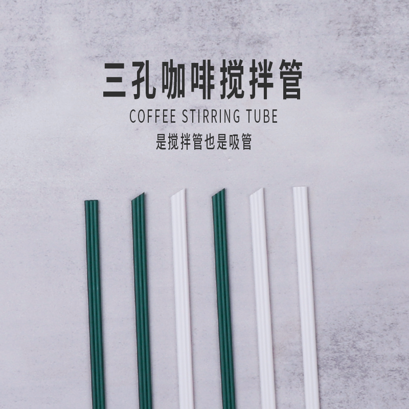 一次性咖啡三孔三品管奶茶霸王PLA白色小吸管茶姬可降解搅拌吸管