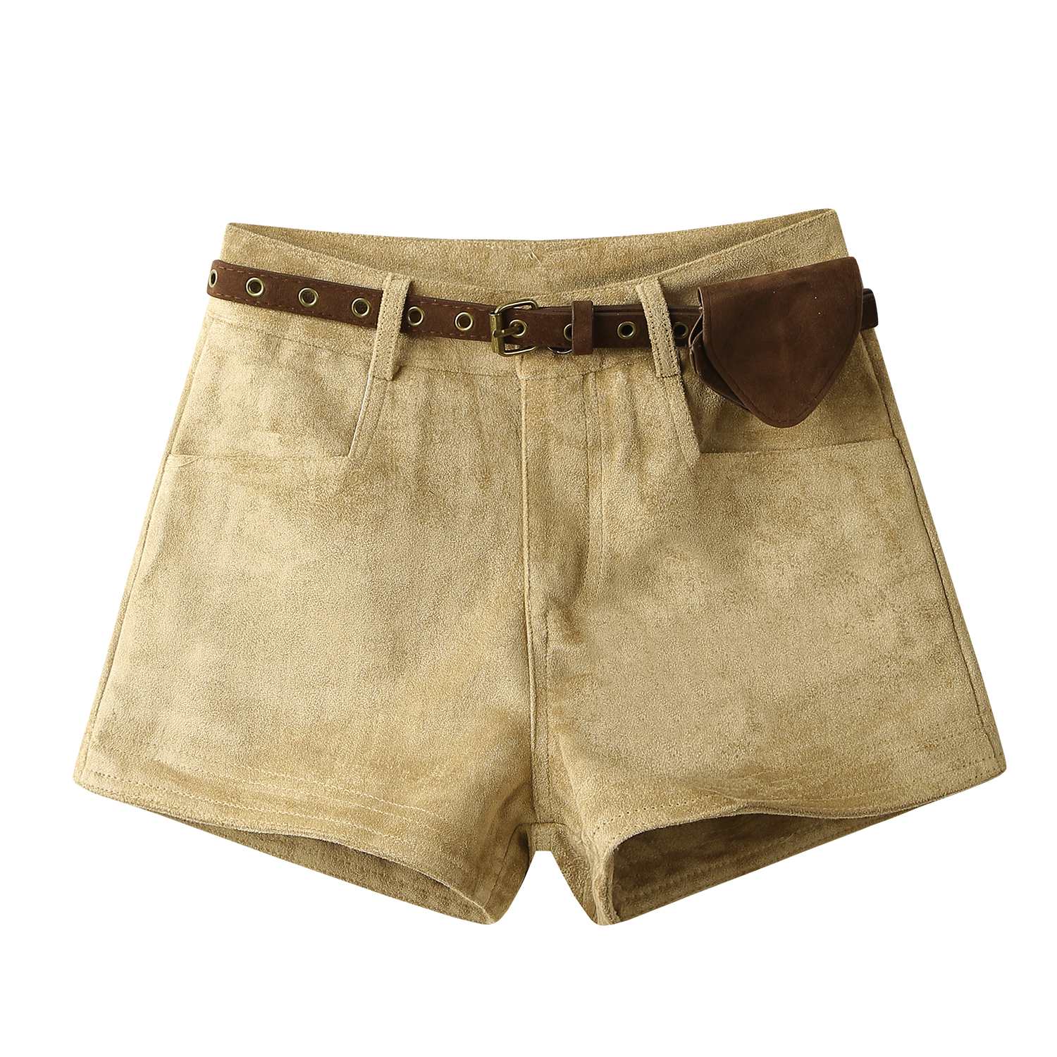 美式复古鹿皮绒短裤女秋冬季新款小个子外穿高腰显瘦休闲a字靴裤