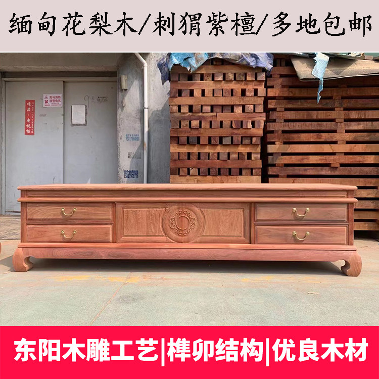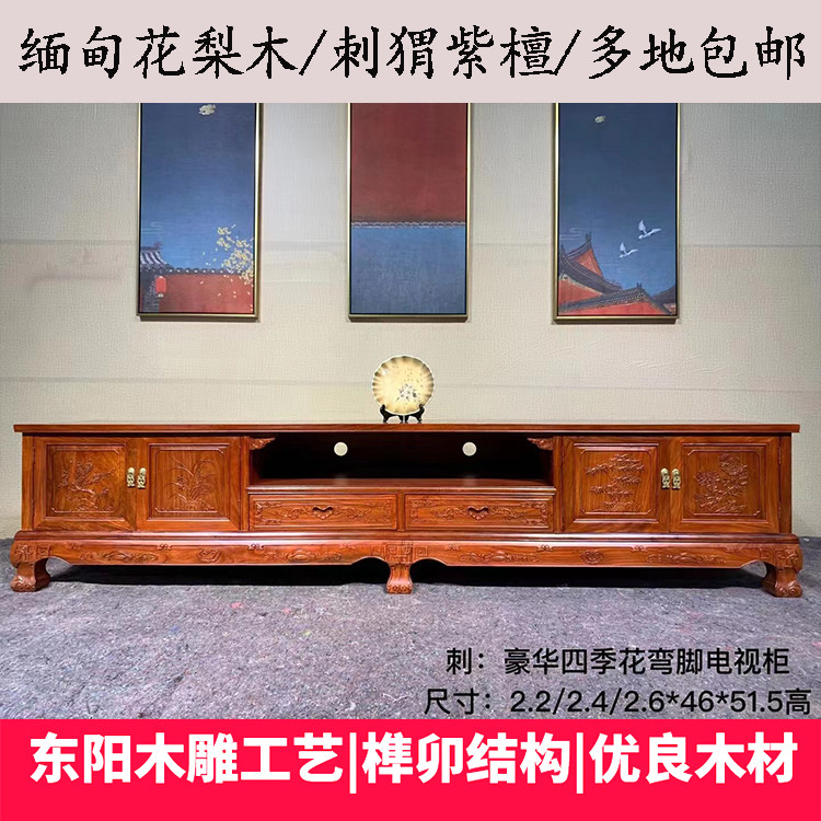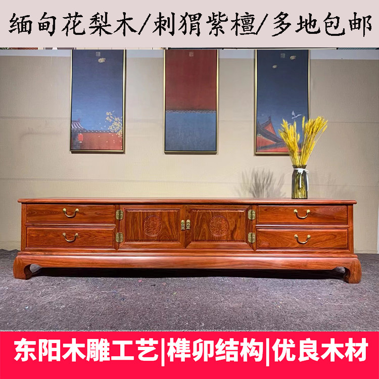 红木电视柜中式家具明清客厅储物雕花梨木地柜大果紫檀电视机柜