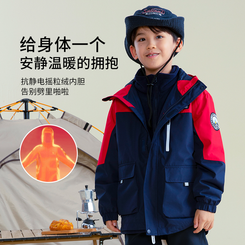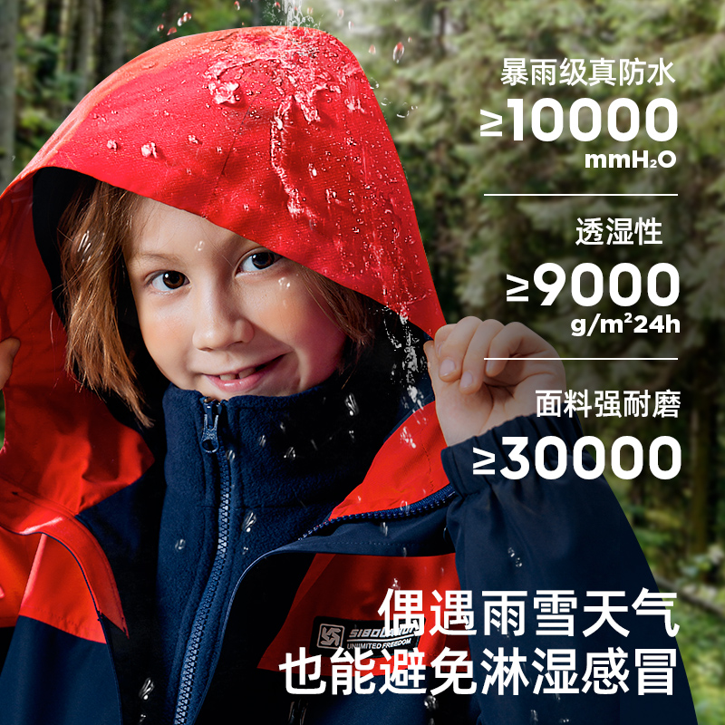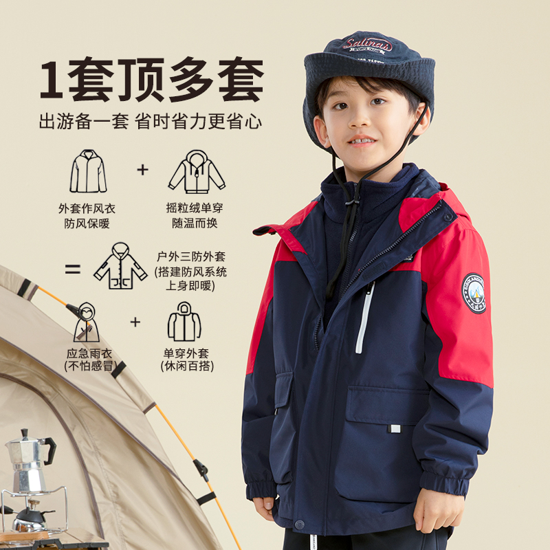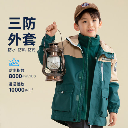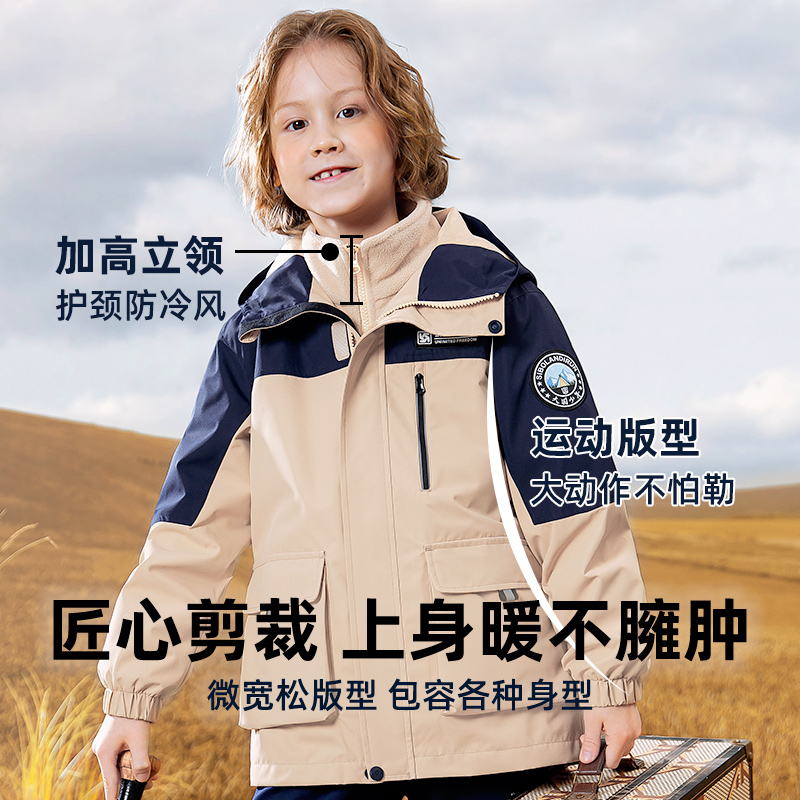 斯博兰帝男童三合一加绒外套女童冲锋风衣春秋中大童防风防水儿童