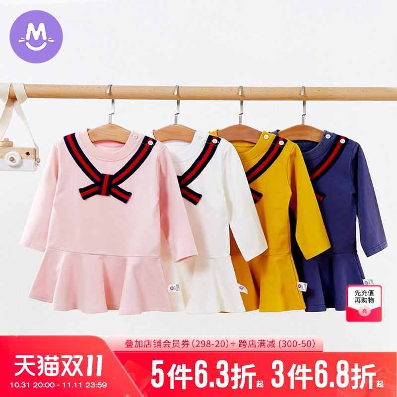 极速女童连衣裙学生领卫衣裙春秋女宝宝春装婴儿春款公Z主儿童裙