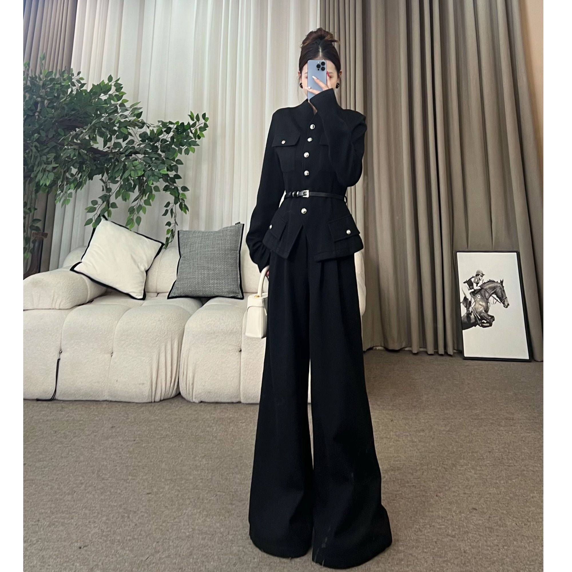XIAOQIN【叙事孤岛】冬季加厚立领单排扣上衣慵懒风套装T511