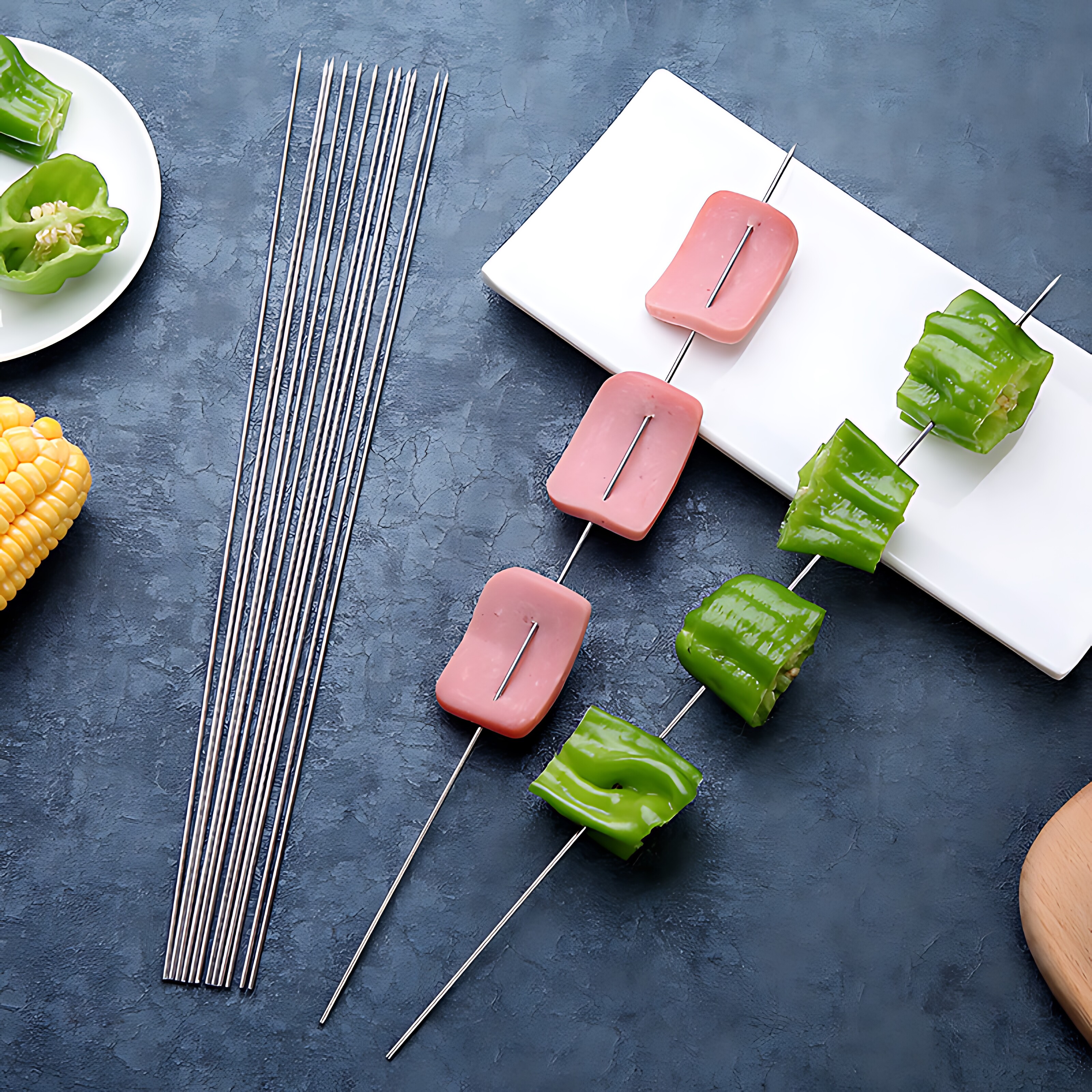 100支食品级304不锈钢烧烤签圆签字烤肉签子羊肉串钳子烧烤针用具