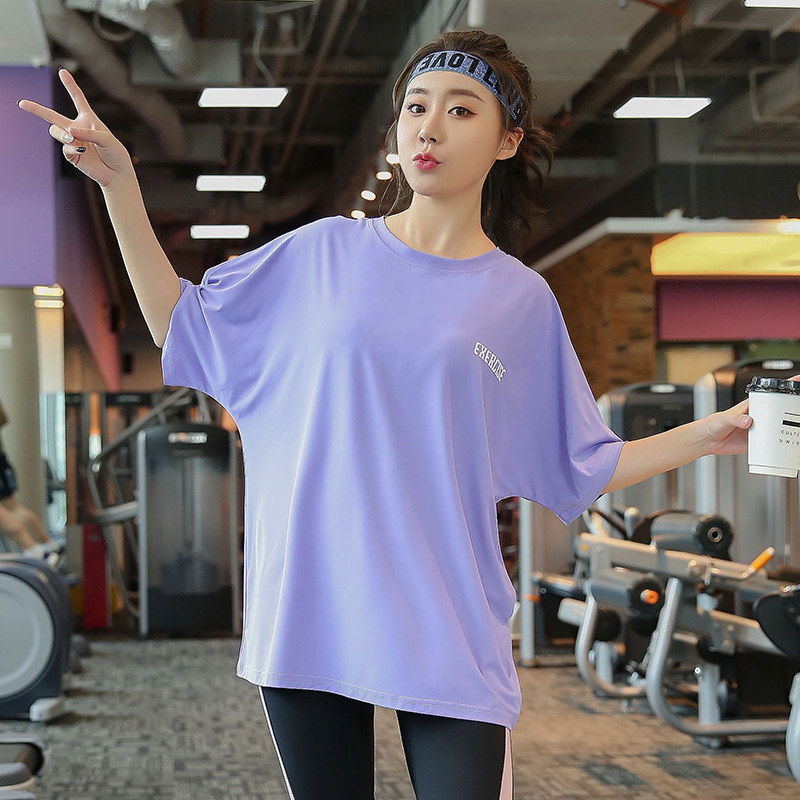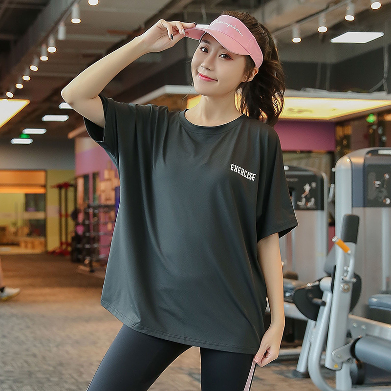 大码宽松瑜伽服T恤女夏季短袖健身速干衣200斤跑步胖妹妹运动上衣