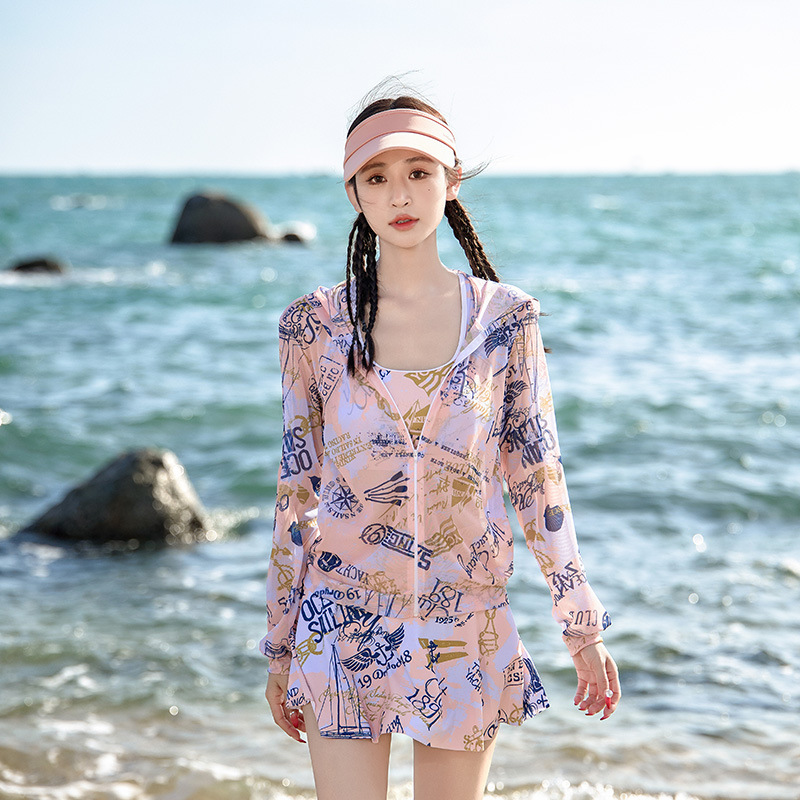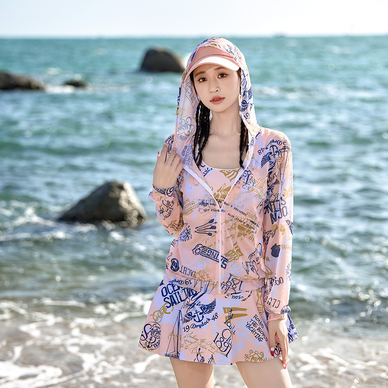 2024新款游泳衣女分体式三件套遮肚显瘦聚拢小胸韩国ins风泡温泉