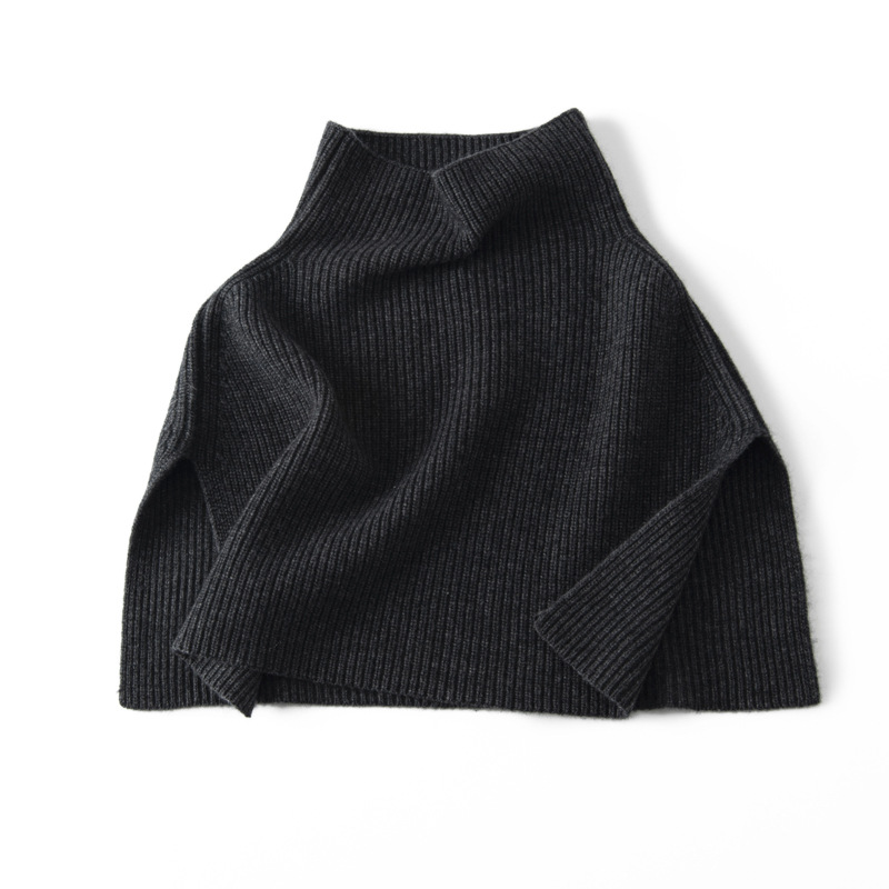 25纯羊绒披肩女针织山羊绒坎肩秋冬加厚全羊绒套头侧开叉斗篷围脖