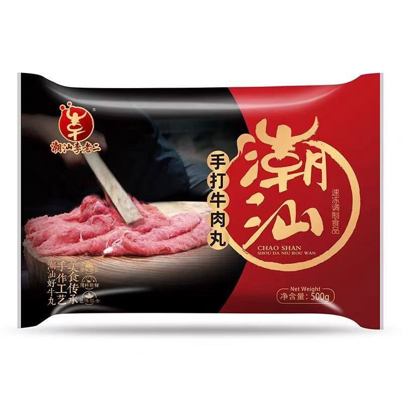 李老二潮汕牛肉丸500g包正宗手打牛肉火锅丸关东煮麻辣烫烧烤食材