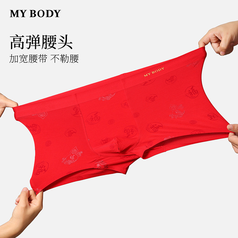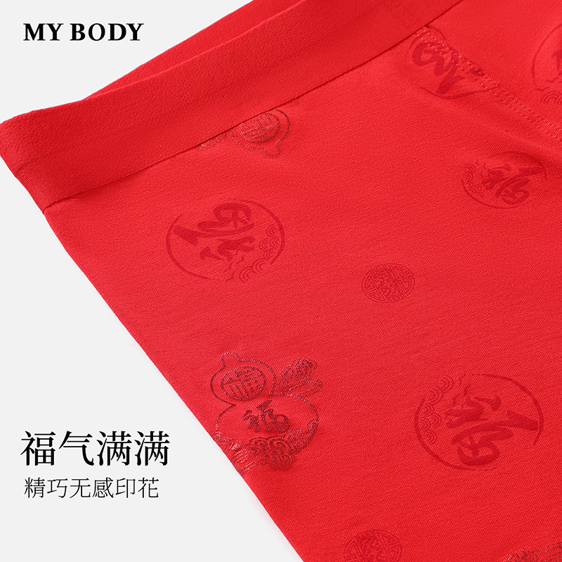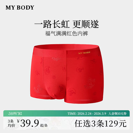 3件129|商场同款MYBODY新款内裤男莫代尔四角短裤本命年红色内裤