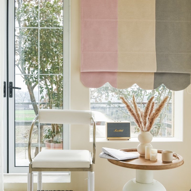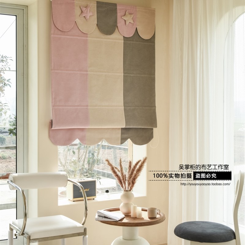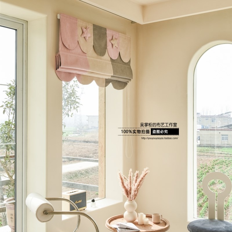 23年奶油色升降罗马帘窗帘卷帘全遮光拉卷式卧室小户型飘窗女孩房