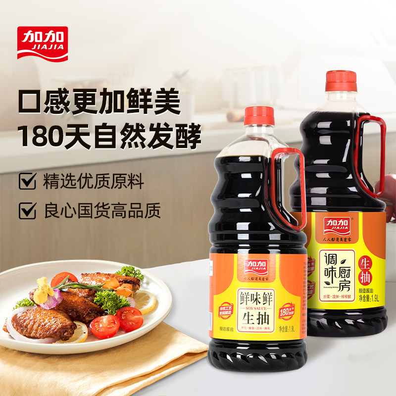 加加调味厨房鲜味鲜生抽1.9L厨房必备炒菜烹饪蘸料酿造酱油调味品