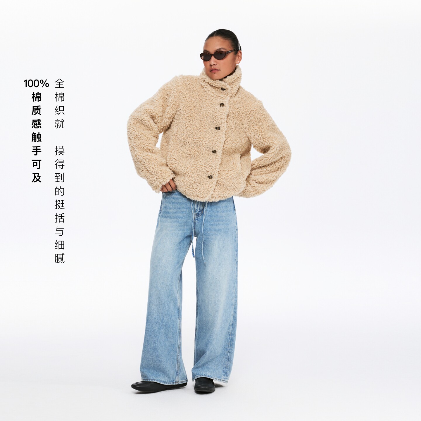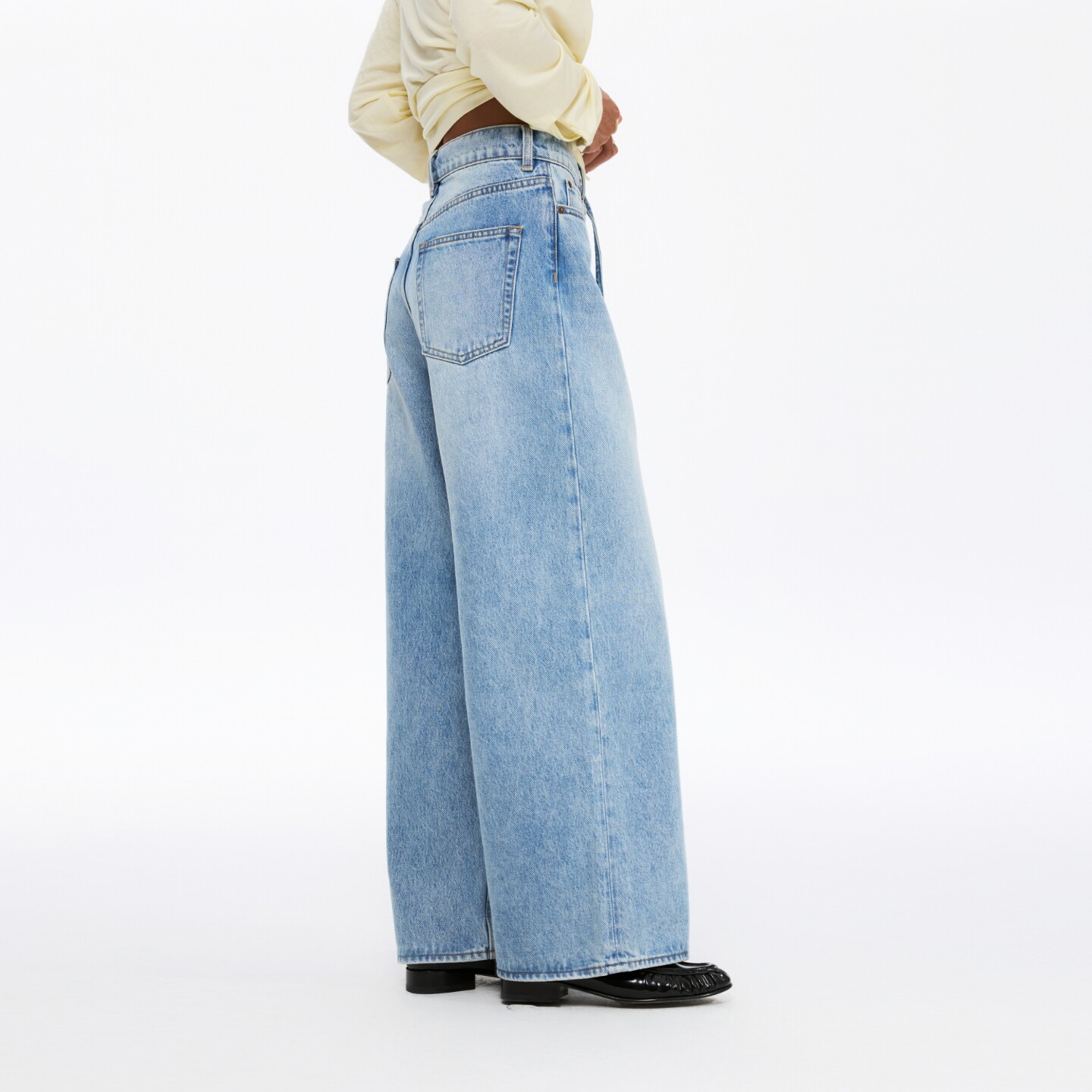 oneup全棉水洗浅蓝色系带牛仔裤女春季休闲裤子宽松直筒阔腿裤