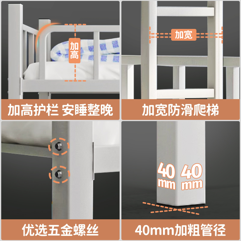 上下铺双层床双人员工宿舍上下床学校公寓高低铁艺床加厚铁艺床架