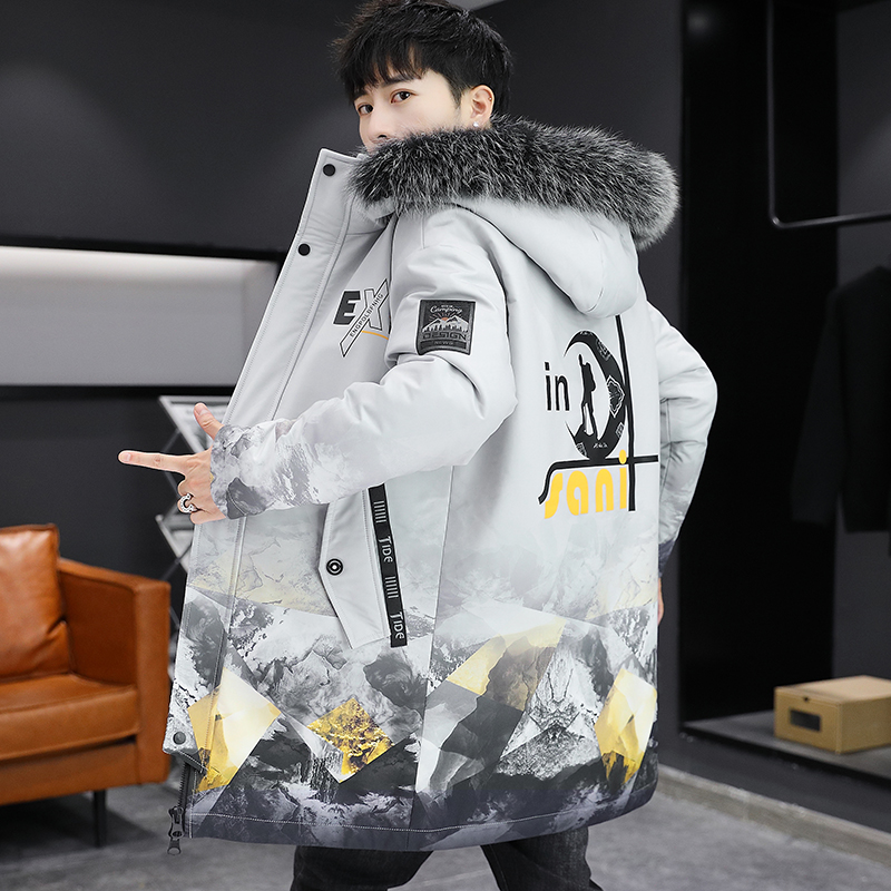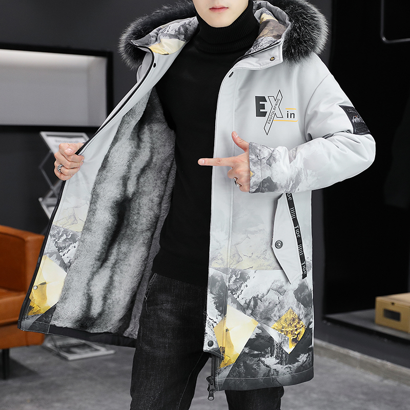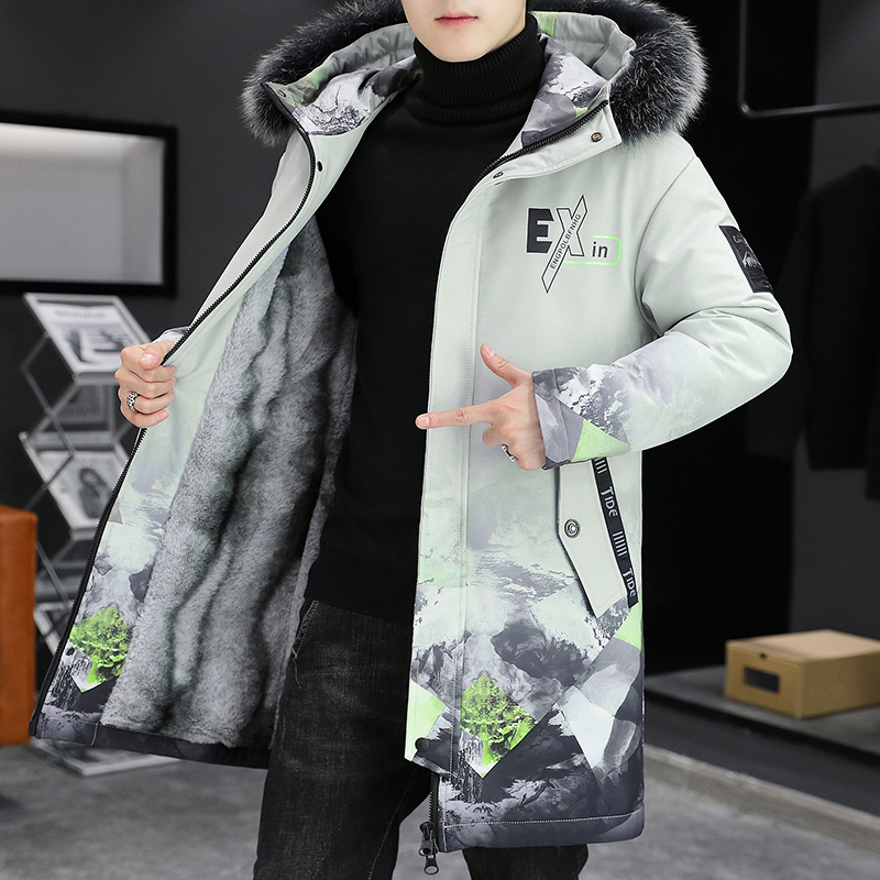 棉服冬季男士外套中长款派克服2024新款加绒加厚保暖连帽夹克棉衣