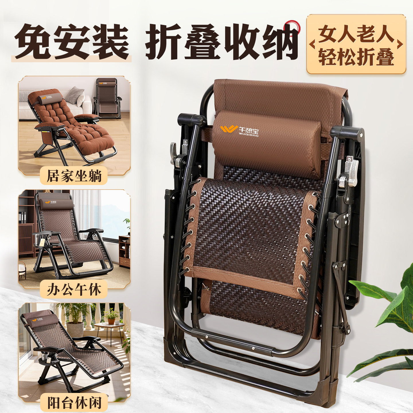 午憩宝躺椅午休折叠床2026坐睡两用藤椅阳台家用休闲老人靠背椅子