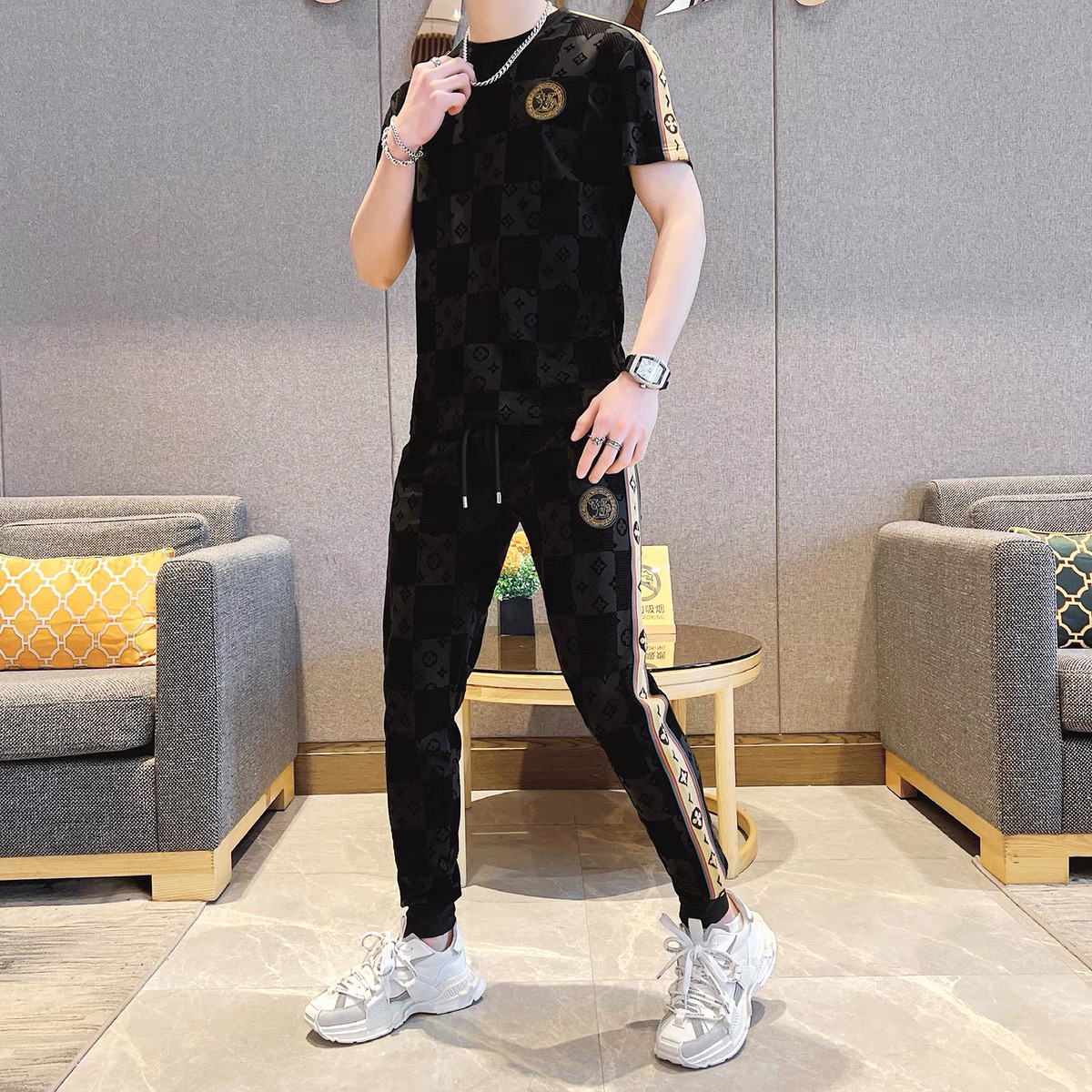 纯棉休闲潮牌卫衣套装男