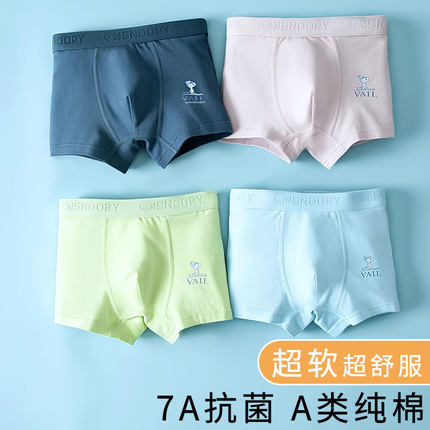史努比男童内裤中大童男孩抗菌四角裤头宝宝儿童纯棉a类平角短裤