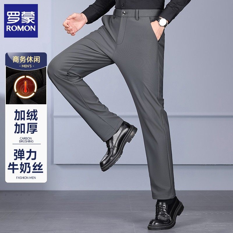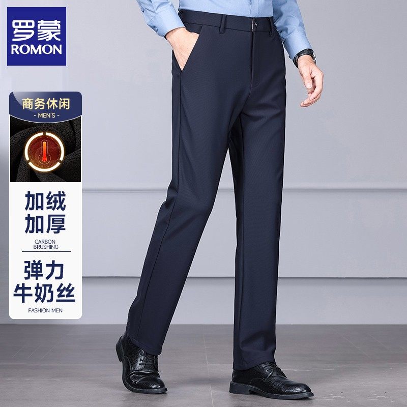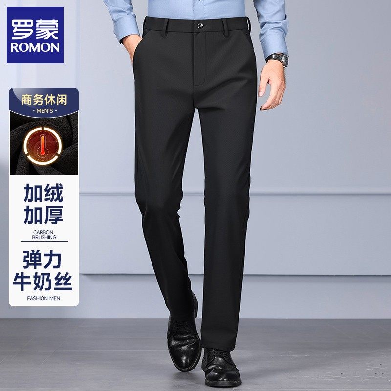 【罗蒙专版】男士休闲裤冬季加绒加厚保暖长裤直筒宽松商务西装裤