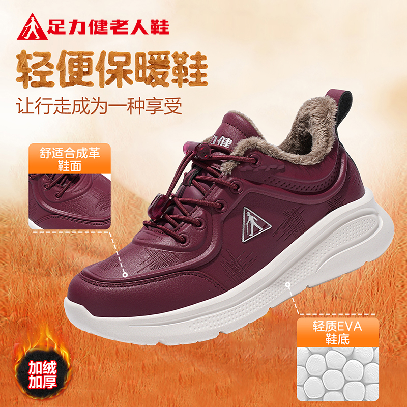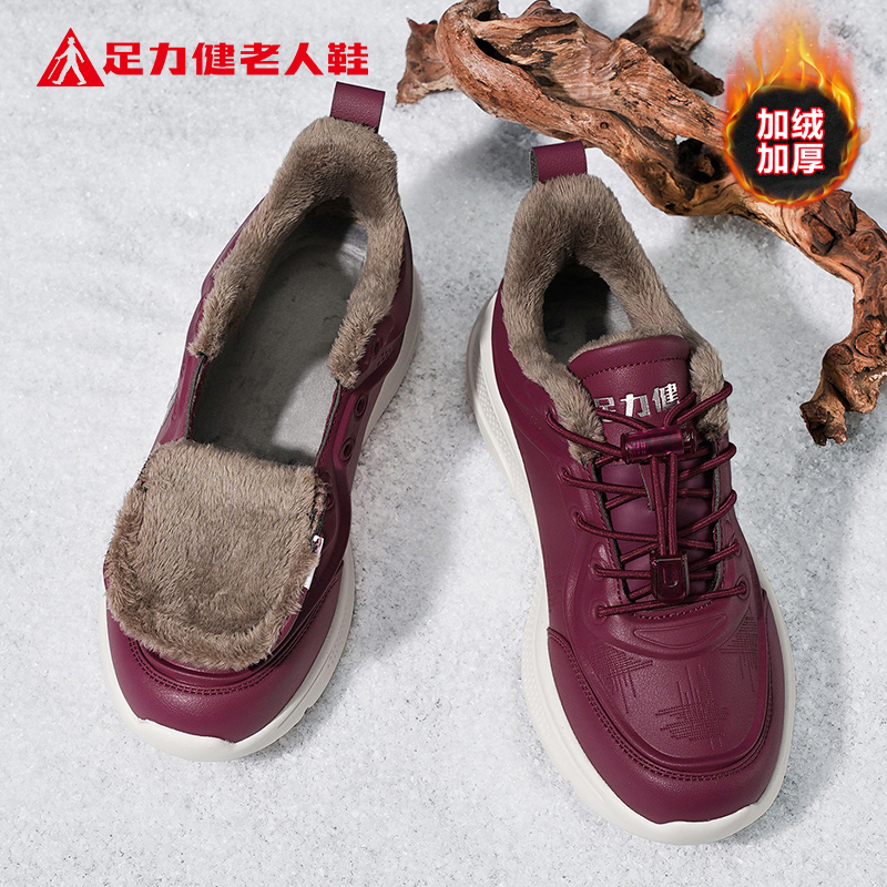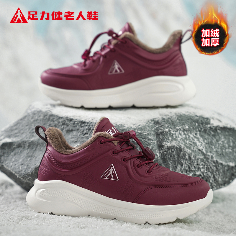 足力健老人鞋旗舰店2025冬季新款保暖加绒加厚棉鞋休闲健步妈妈鞋