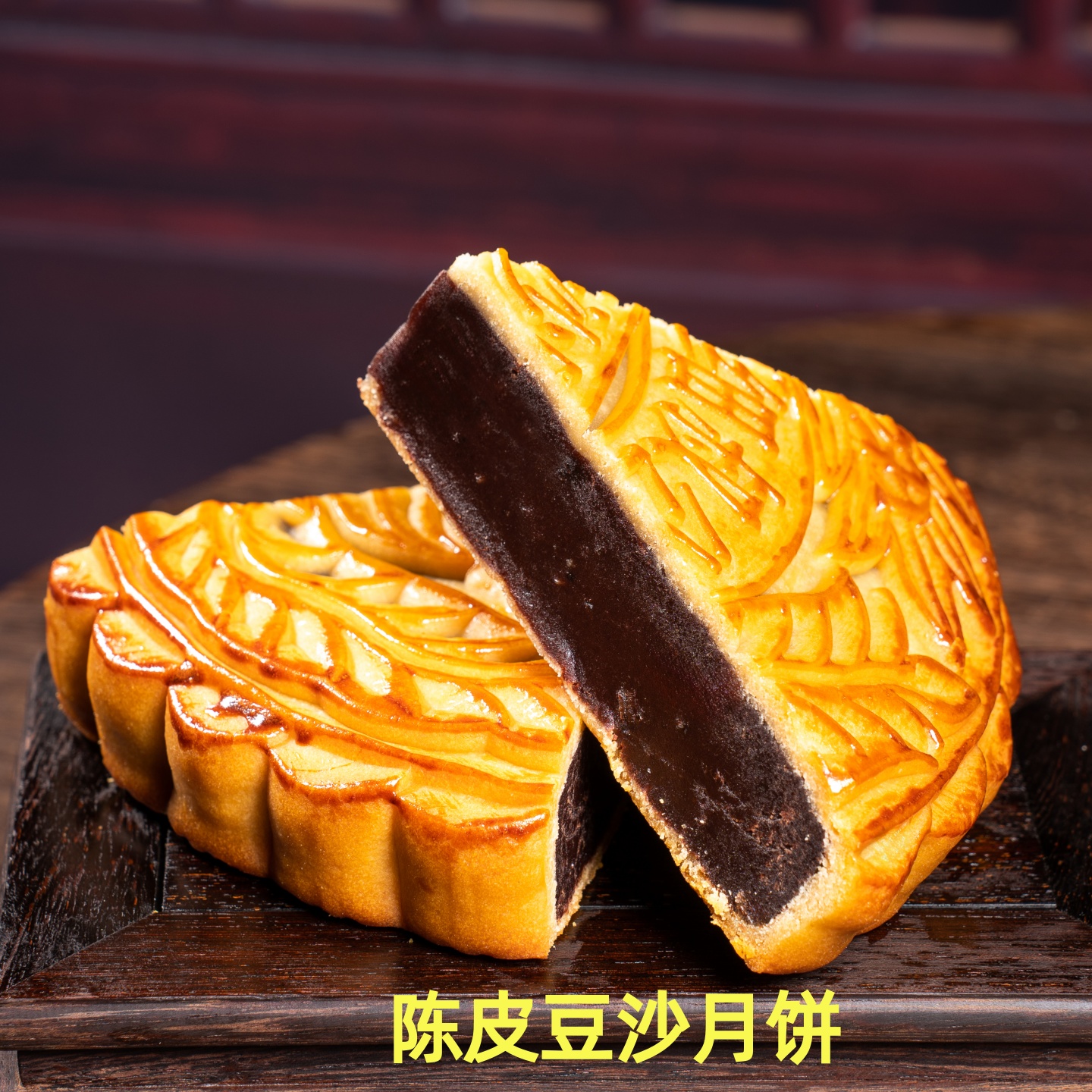 细叔公陈皮豆沙月饼红豆沙馅清香广式特产传统手工制作中秋节糕点
