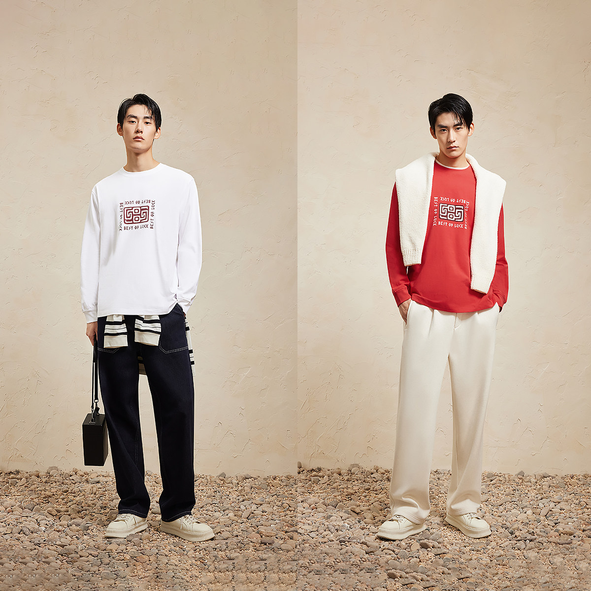 杰克琼斯男装2025年秋红色蛇本命年新年重磅棉T恤宽松长袖打底衫