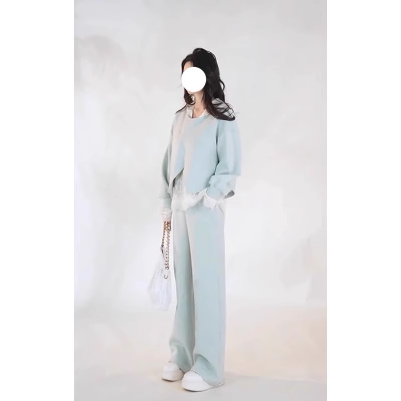 假两件蕾丝卫衣阔腿裤女装