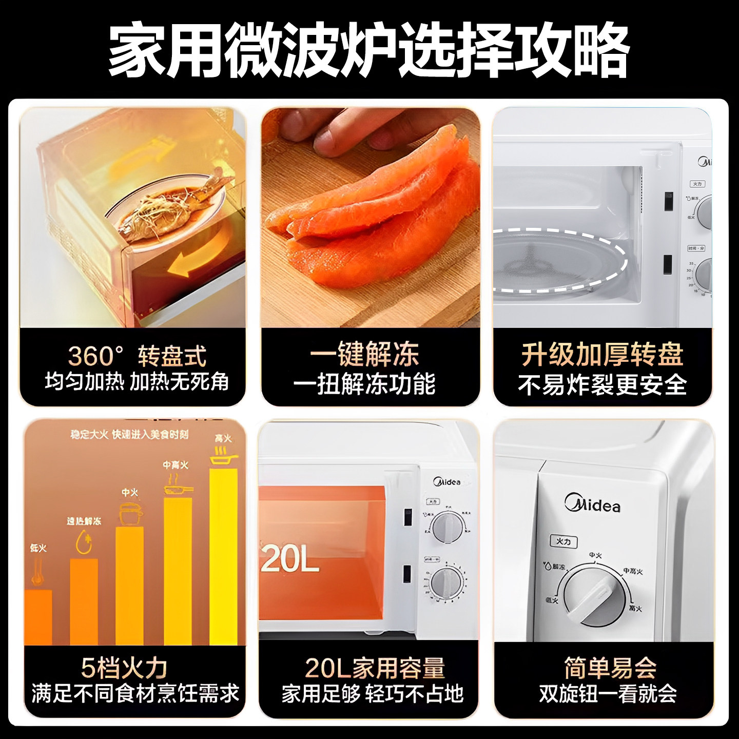 美的微波炉家用饭盒多功能转盘迷你热饭小型官方旗舰店新式PM20A0