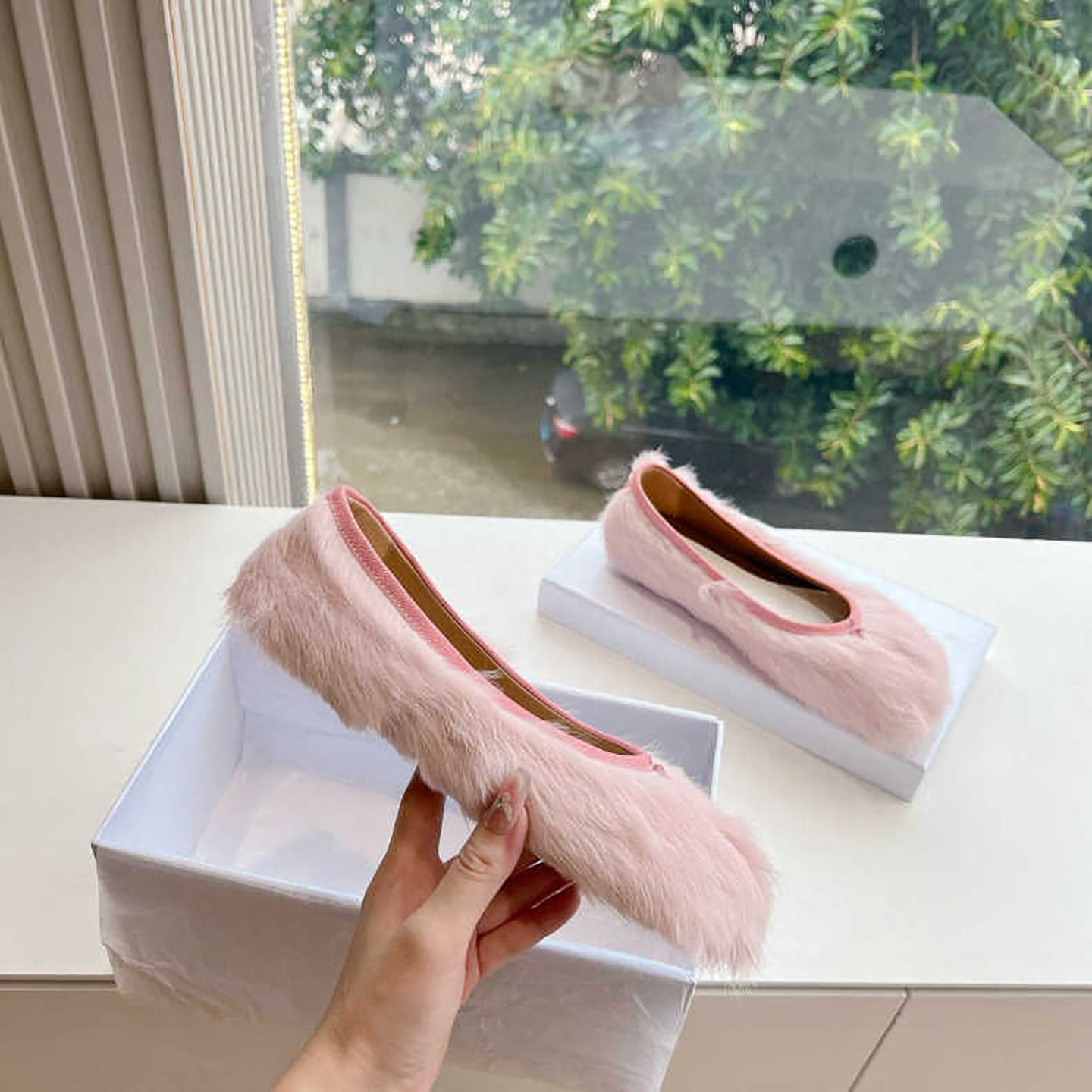 羊皮版~秋冬新分趾鞋毛毛鞋平底休闲鞋外穿居家保暖真毛拖鞋