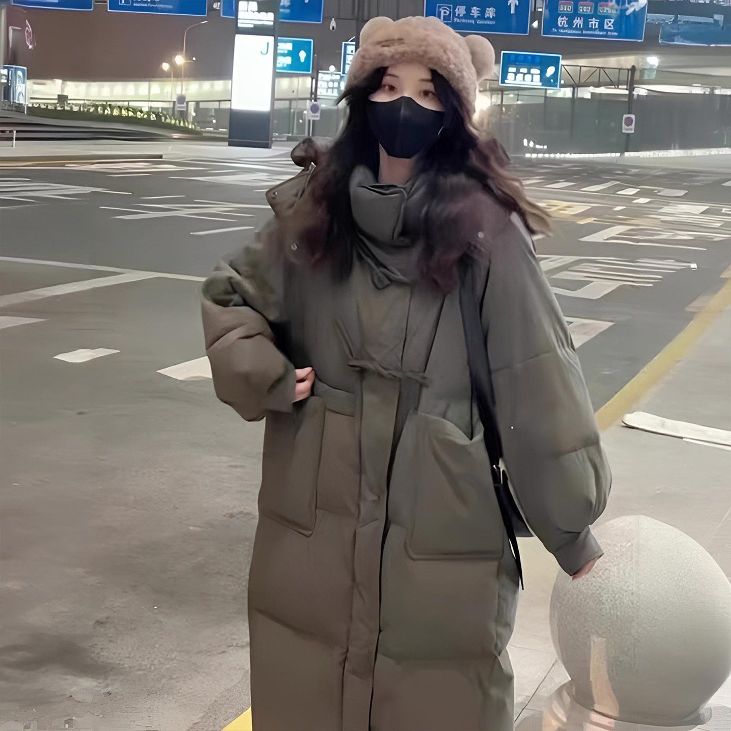 大码女装胖mm灰绿色宽松显瘦面包服外套女冬季加厚保暖中长款棉服