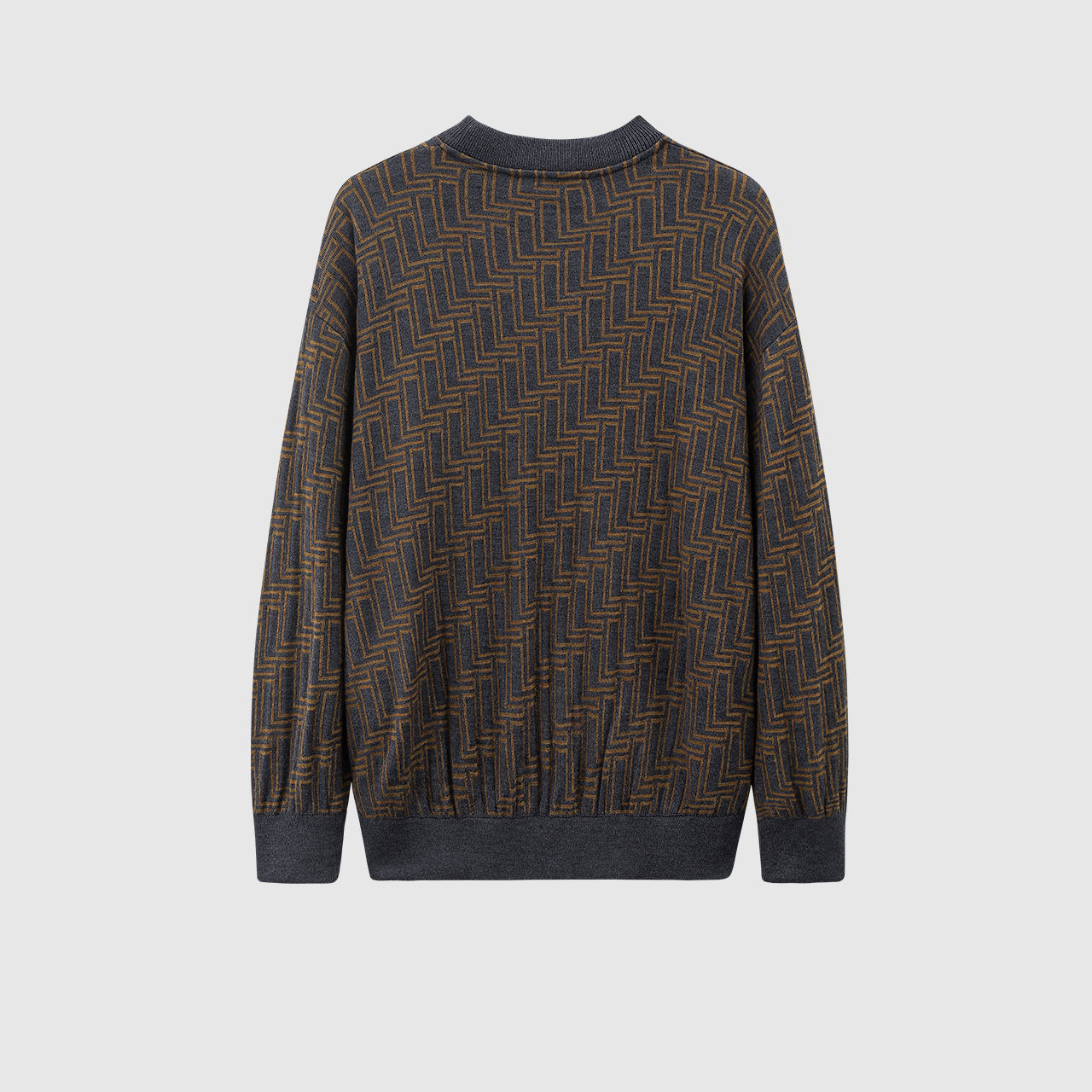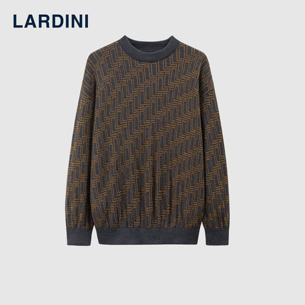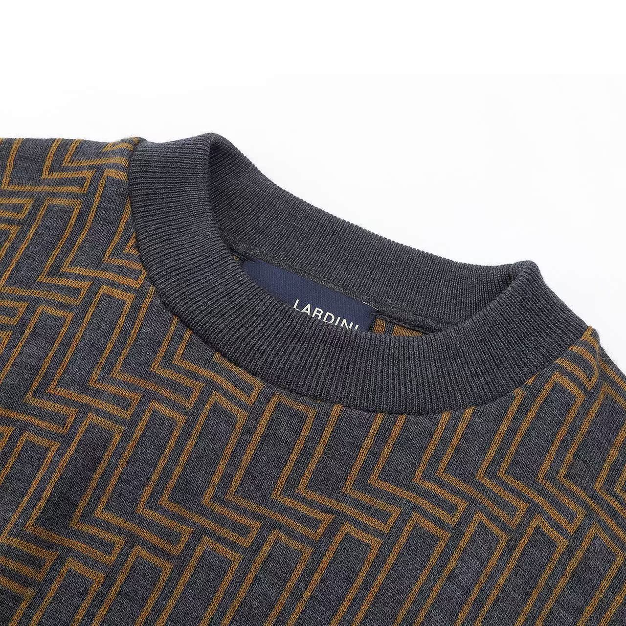 LARDINI意大利进口羊毛混纺时尚几何纹商务休闲男圆领针织毛衫