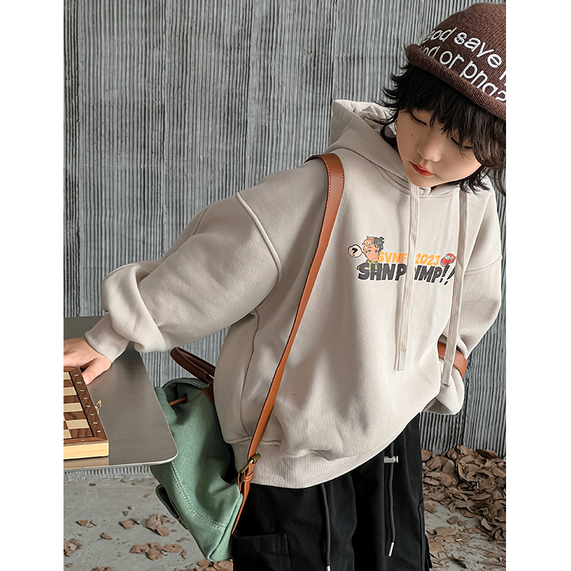 大E小e童装冬款卡通加绒卫衣儿童一体绒连帽衫男女童上衣5066