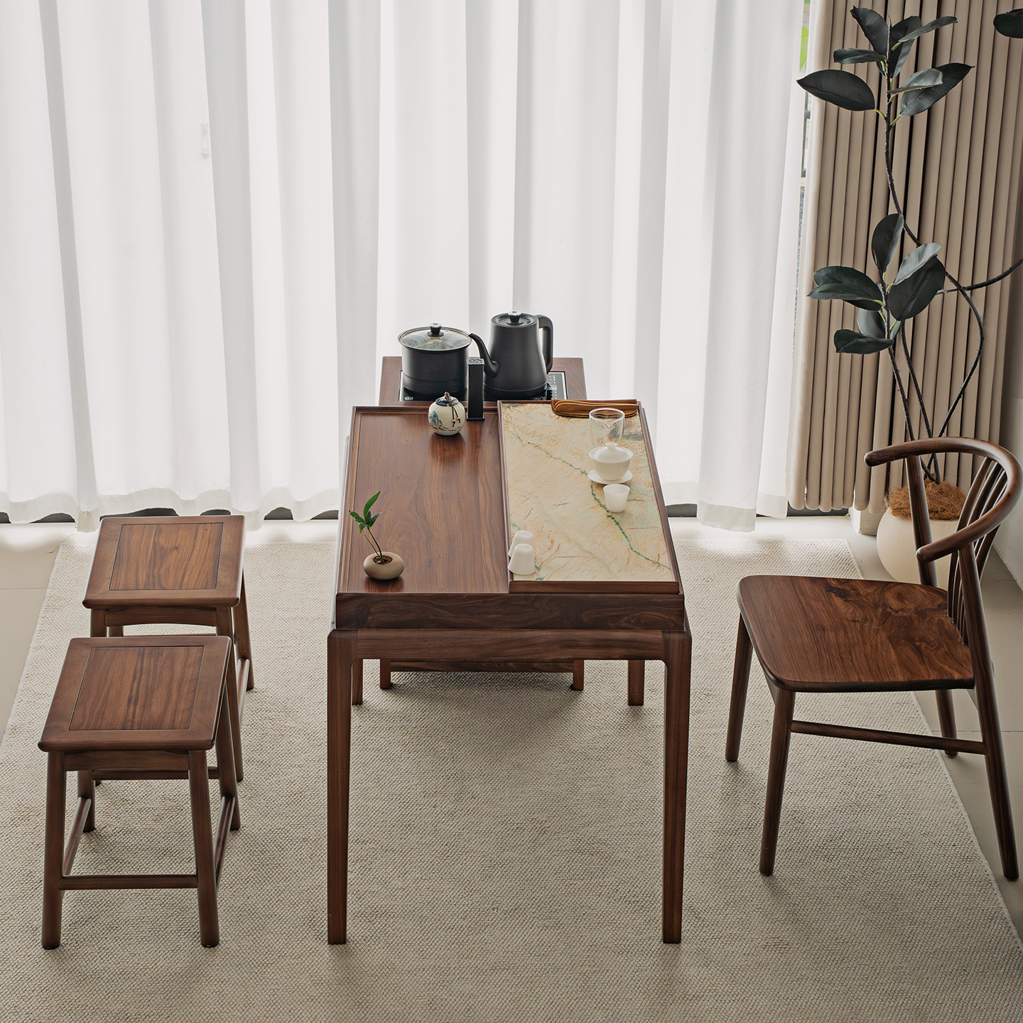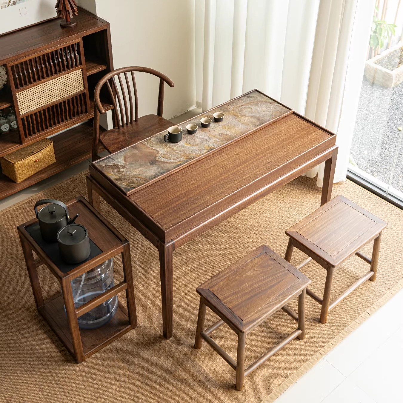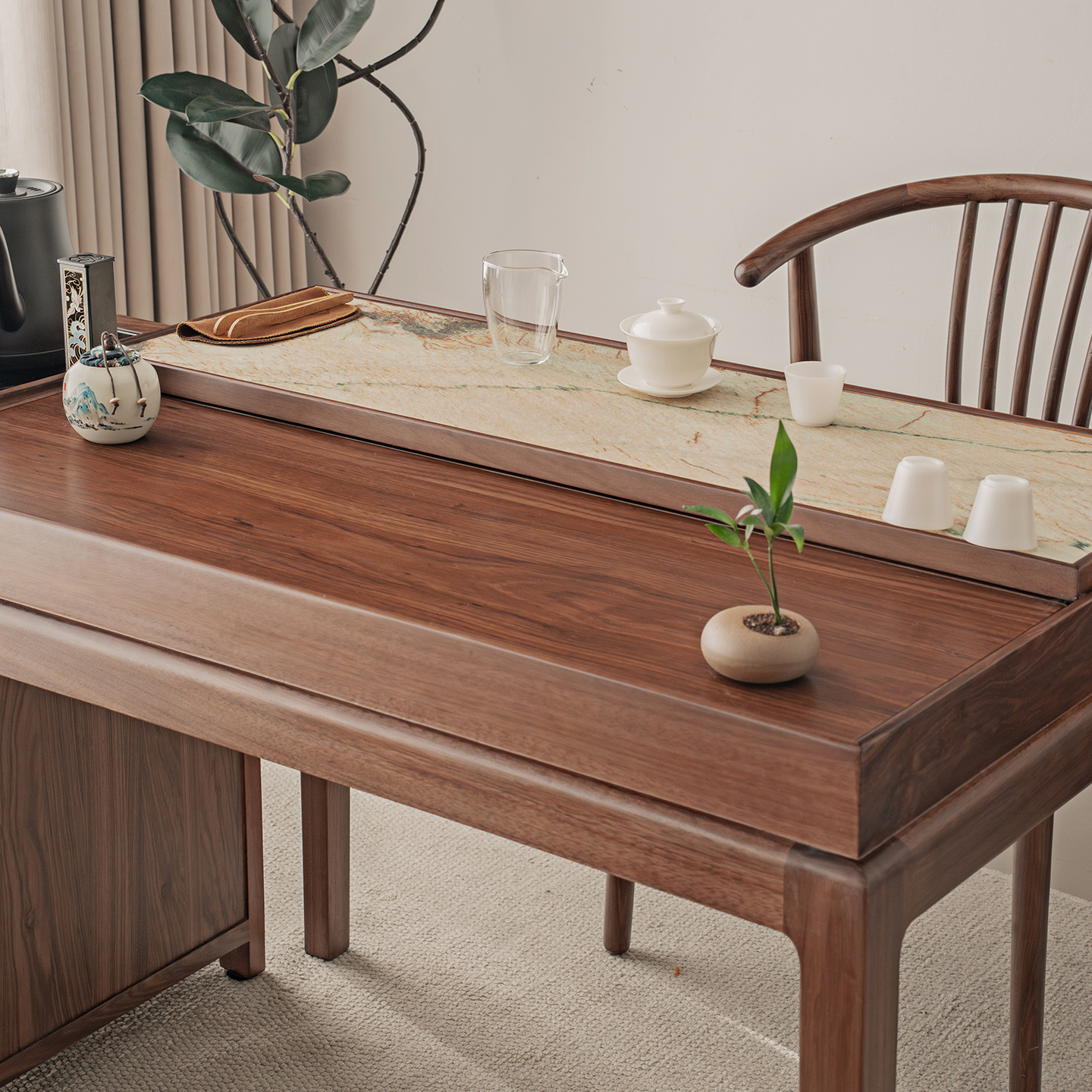 北美黑胡桃木新中式实木家用阳台收纳茶台茶桌高端客厅小户型茶桌
