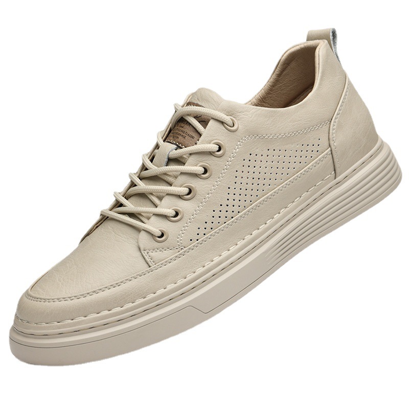 夏季镂空隐形增高8CM板鞋牛皮面透气青年鞋系带厚底户外运动男鞋
