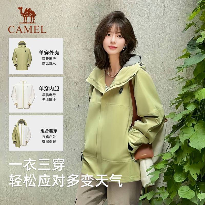 骆驼联名熊猫雨壳MAX冲锋衣女2025户外新款秋冬三合一登山服外套