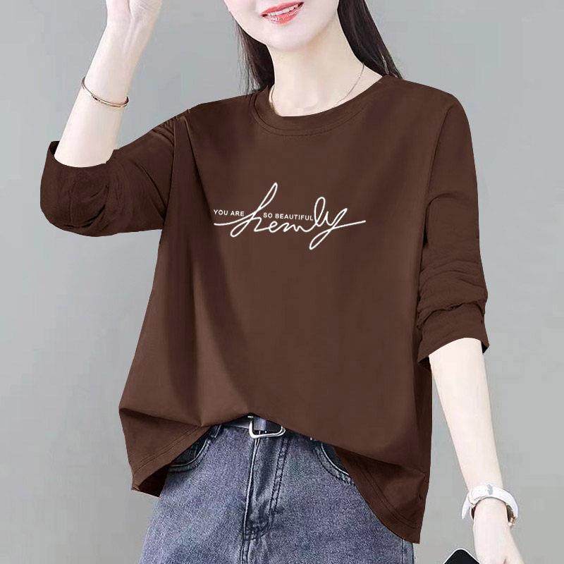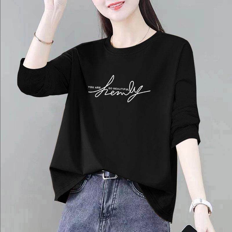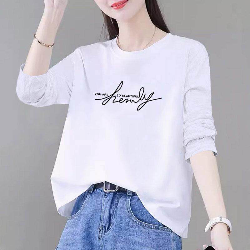 长袖打底衫女内搭t恤春新款休闲简约宽松显白字母印花体恤衫0111e
