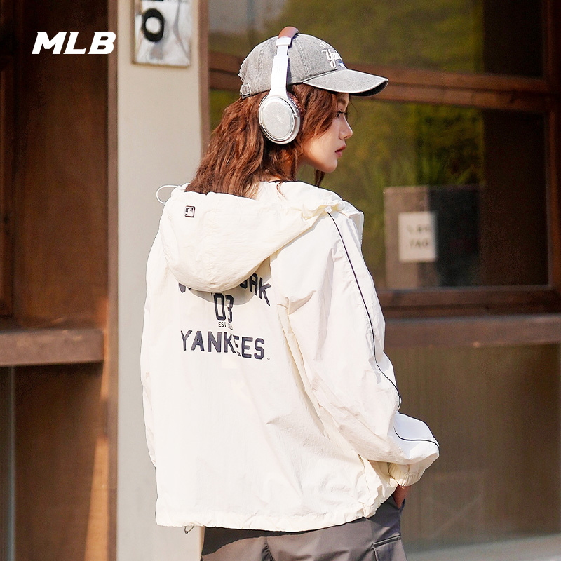 MLB官方 男女学院风防晒凉感拉链连帽外套25夏季新款WJV01/WJV03