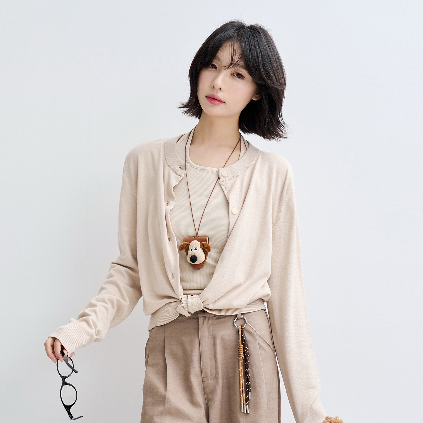 万有引力博物馆 纯色开衫针织衫女春秋款宽松正肩上衣秋装外套