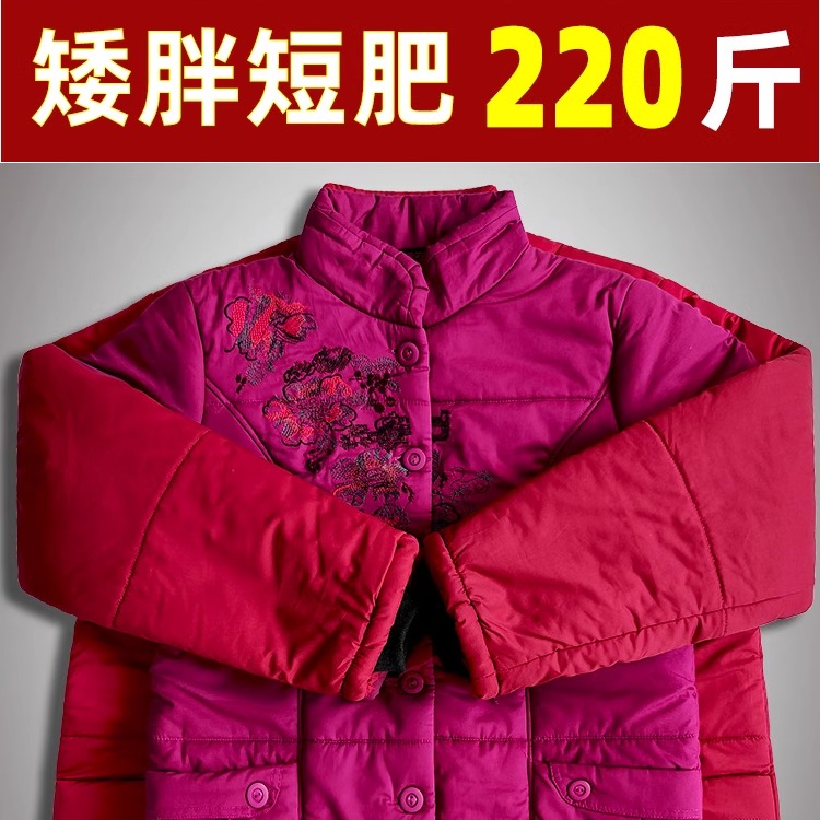 矮胖老人外穿短款羽绒棉袄外套女加大码矮个妈妈短肥棉衣中厚棉服