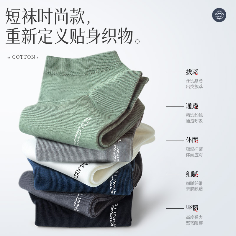 猫人男士袜子短袜夏季薄款纯棉防臭吸汗黑色男款式夏天运动船袜h3