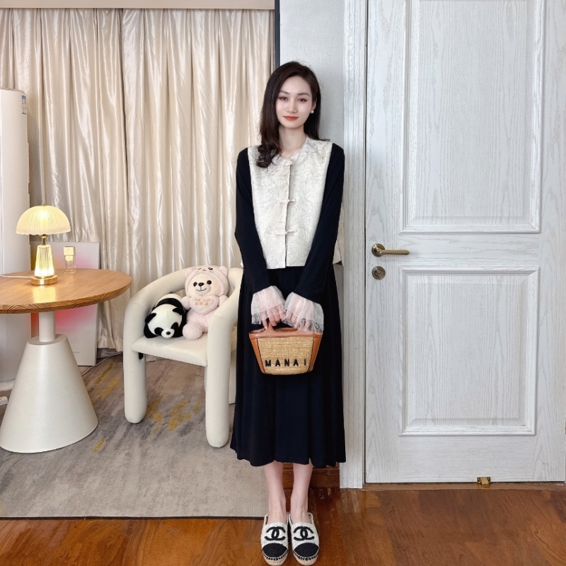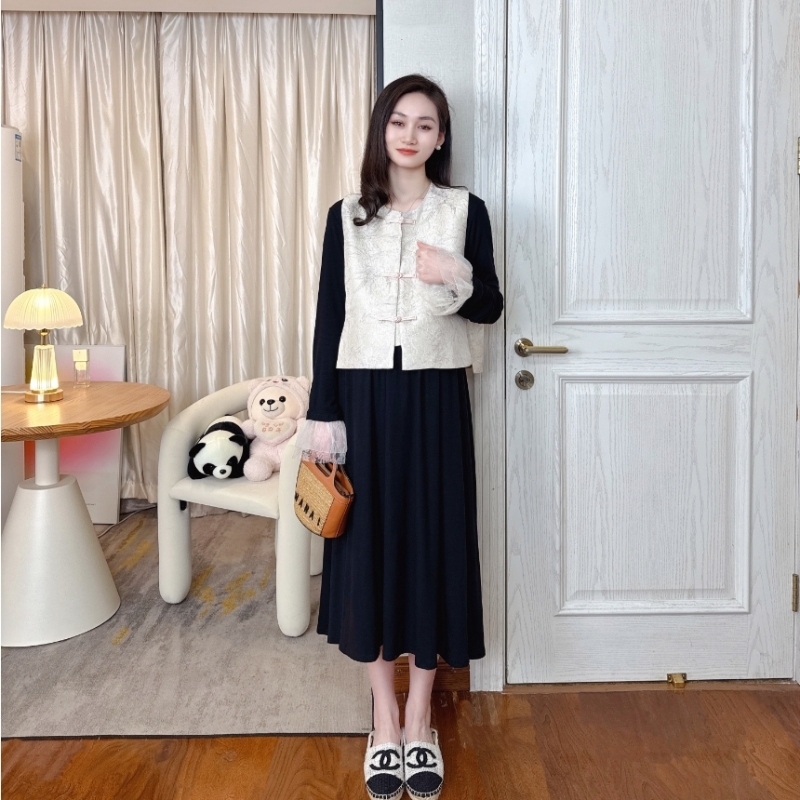 春夏款新中式孕妇套装2025设计感重工刺绣马甲拼接显瘦时尚连衣裙