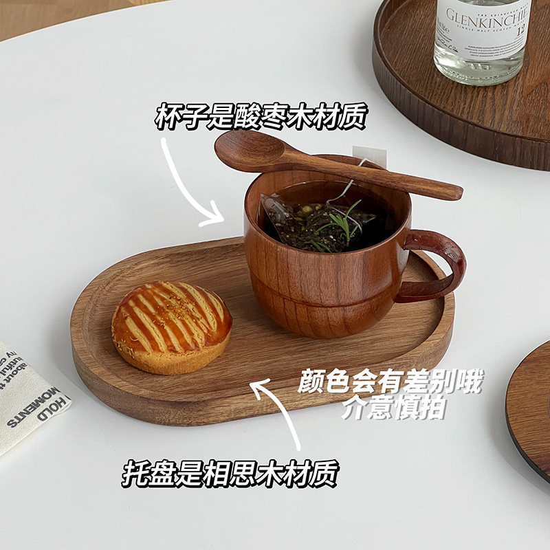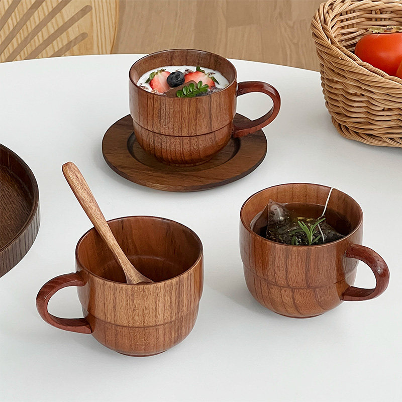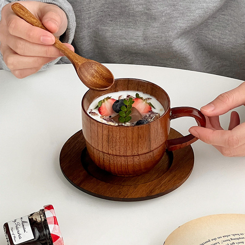 穆尼日式木质杯实木咖啡杯一人食早餐杯盘复古水杯餐厅下午茶套装