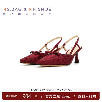 包小姐与鞋先生春夏季樱桃釉红编织后空半凉鞋女251063