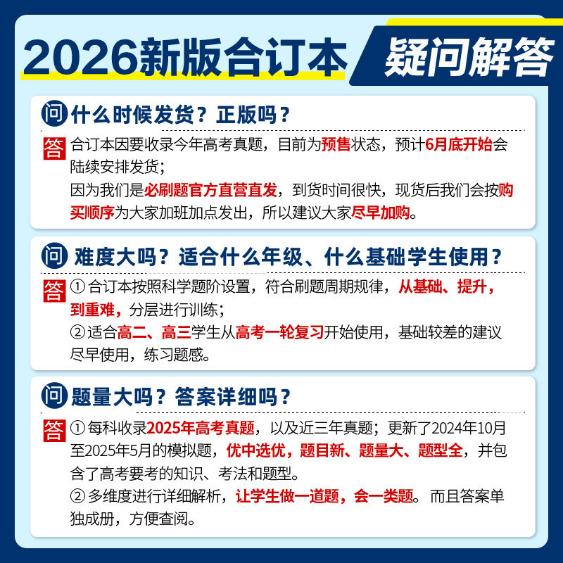 高考必刷题合订本2026新版数学物理化学生物地理历史政治语文英语新教材高中含2025高考真题高三一轮总复习教辅资料山东专版