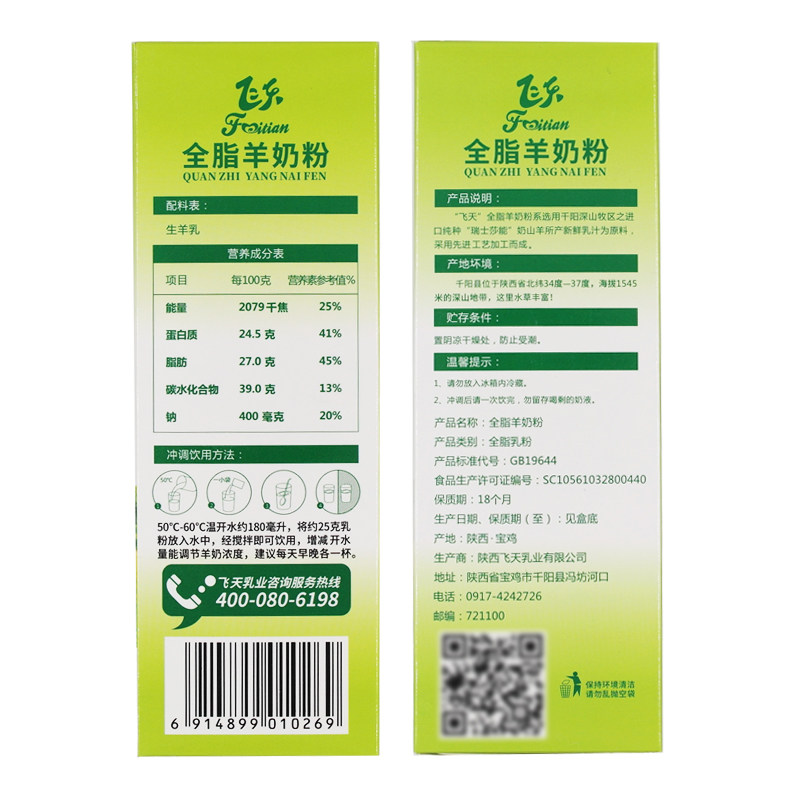 陕西飞天纯山羊奶粉成人羊奶粉男士女士中老年学生羊奶粉全脂正品