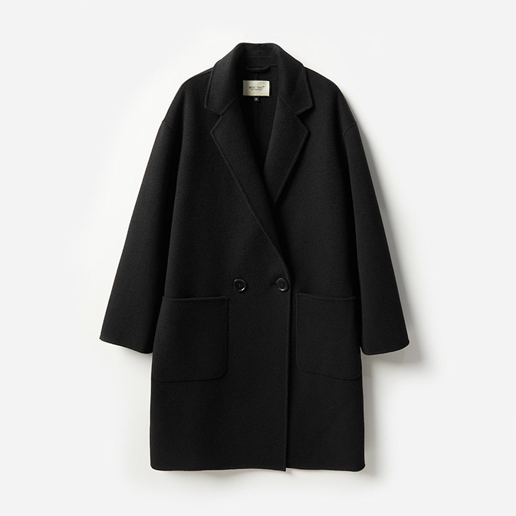 WDY06071 千克级纯粹自然简约主义奢华全羊绒翻领双排扣大衣女