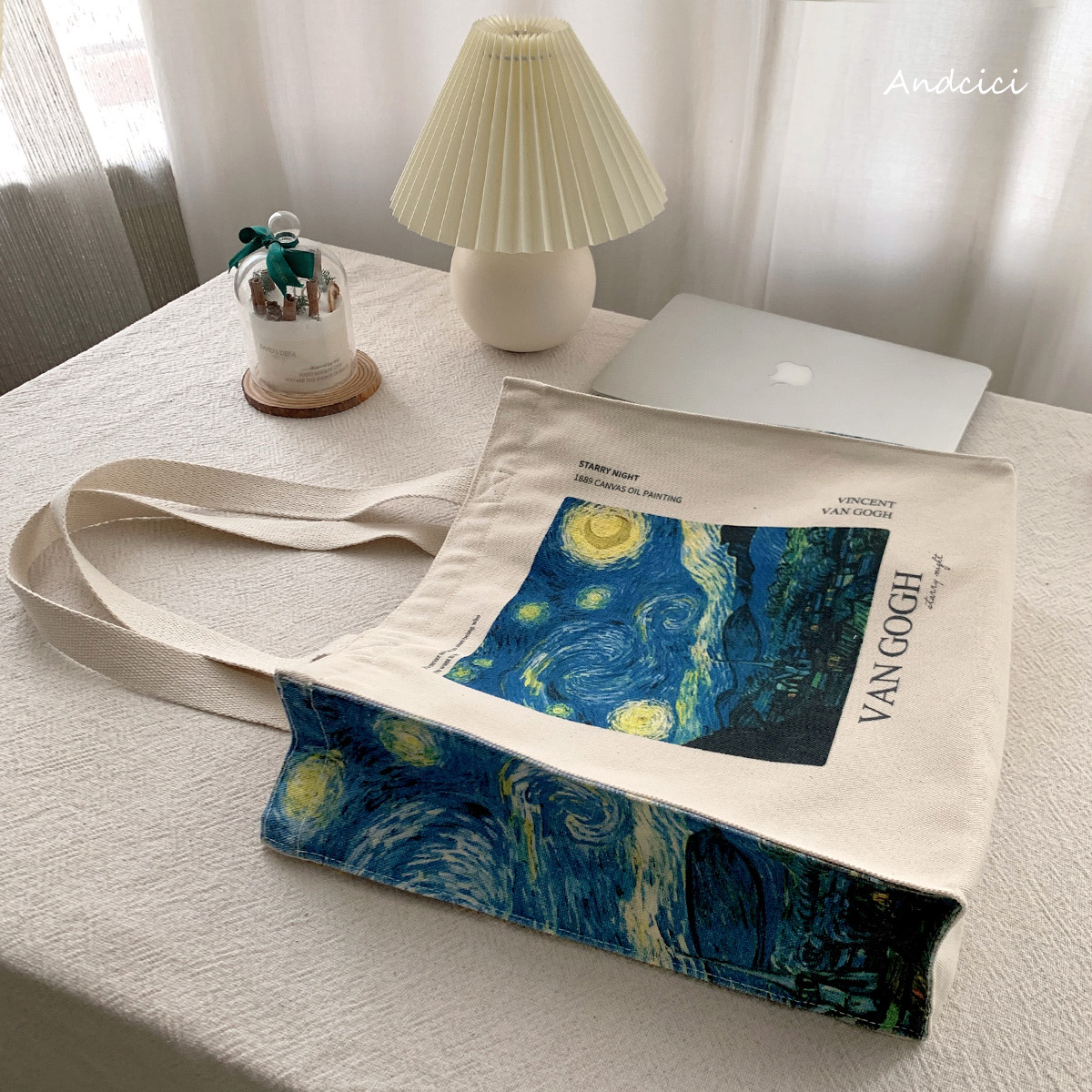 ANDCICI博物馆梵高星空油画帆布袋单肩包男女学生书包手提购物袋