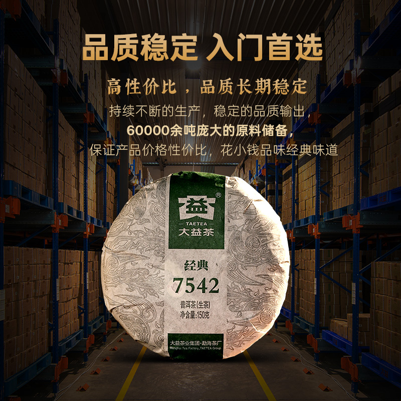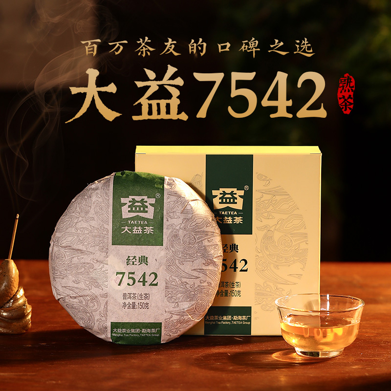大益普洱茶7542经典标杆饼茶口粮茶叶150g生茶回甘官方旗舰店