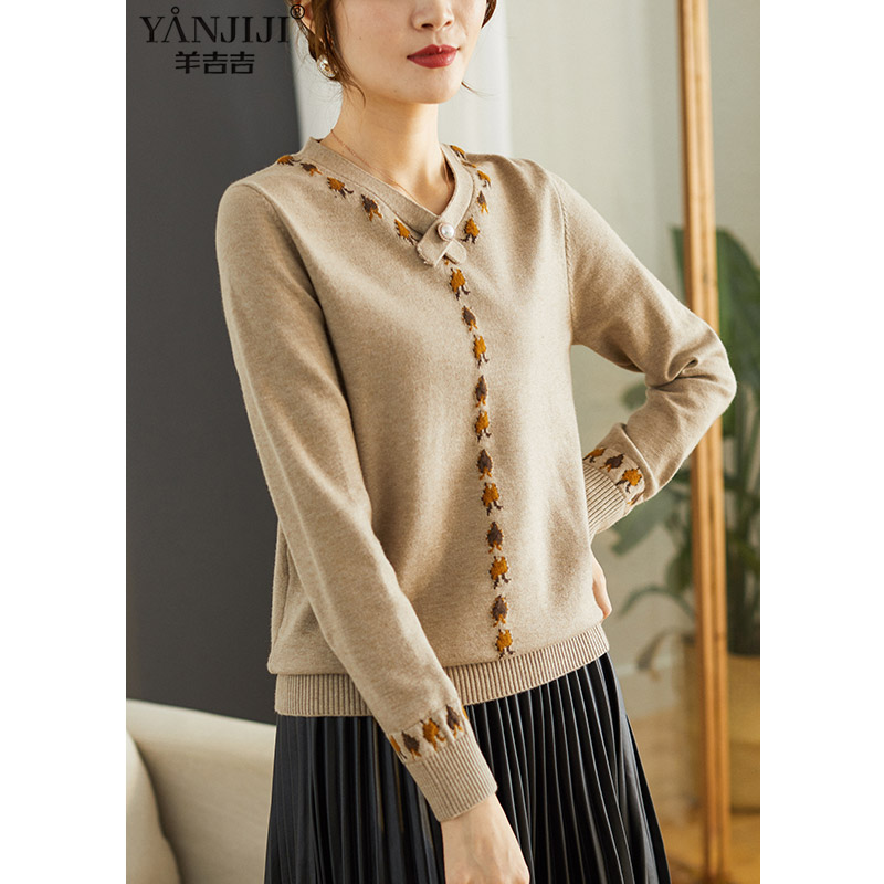 妈妈毛衣春装针织打底衫2024新款50岁中老年人女春秋内搭洋气上衣