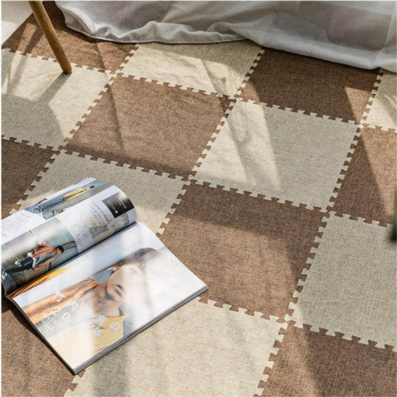 i9at日韩出口麻棉拼接地毯家用客厅卧室满铺榻榻米简约布艺地垫子